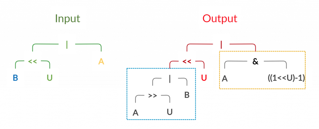3{ A|(B<<U), !(!(A>>U)|B)<<U|s(A&((1<<U)-1)) },